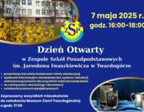 7 maja 2025 r. w godzinach popołudniowych Uczniowie naszej szkoły i ich Rodzice uczestniczyli w Dniu Otwartym Zespołu Szkół Ponadpodstawowych w Twardogórze.