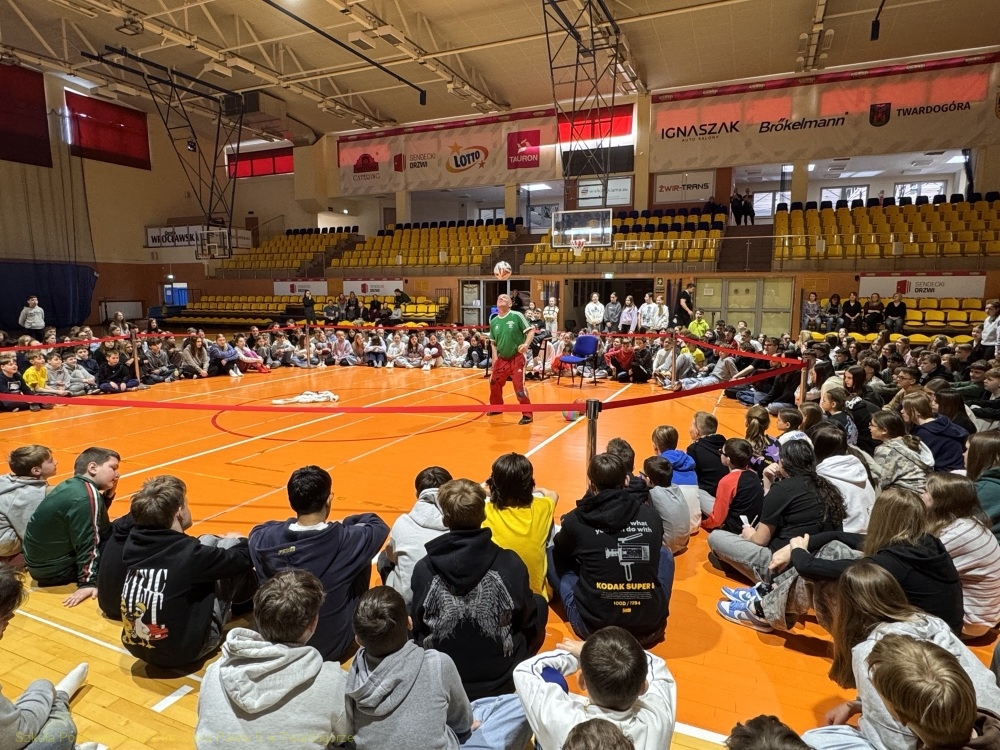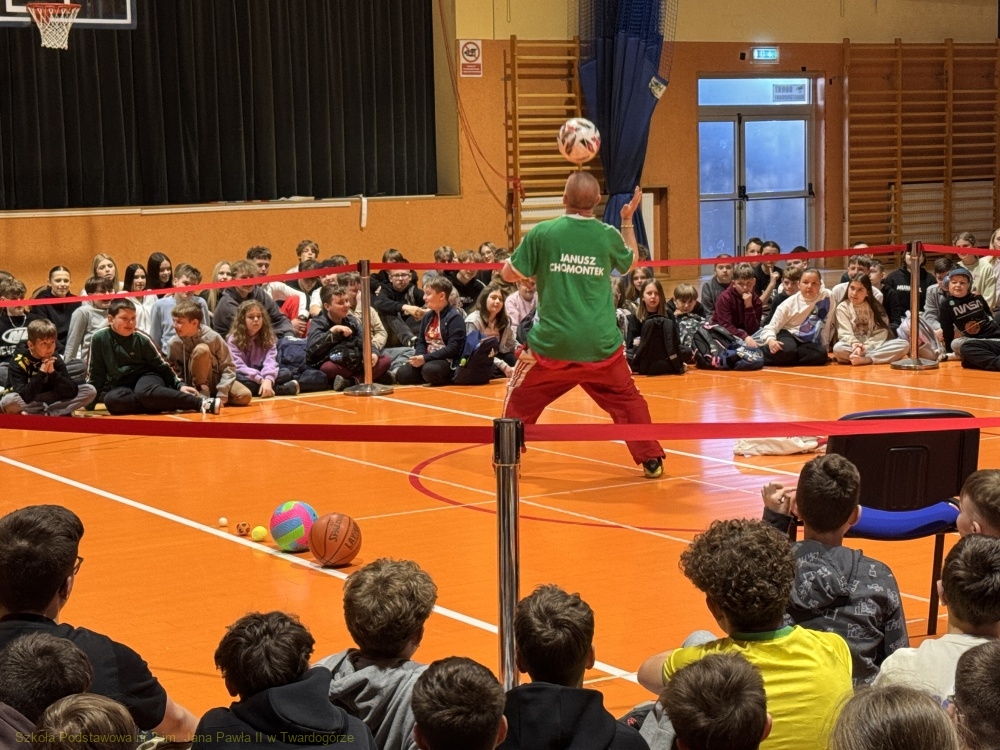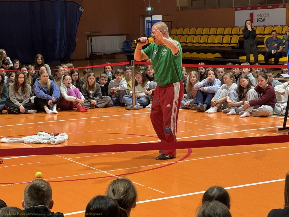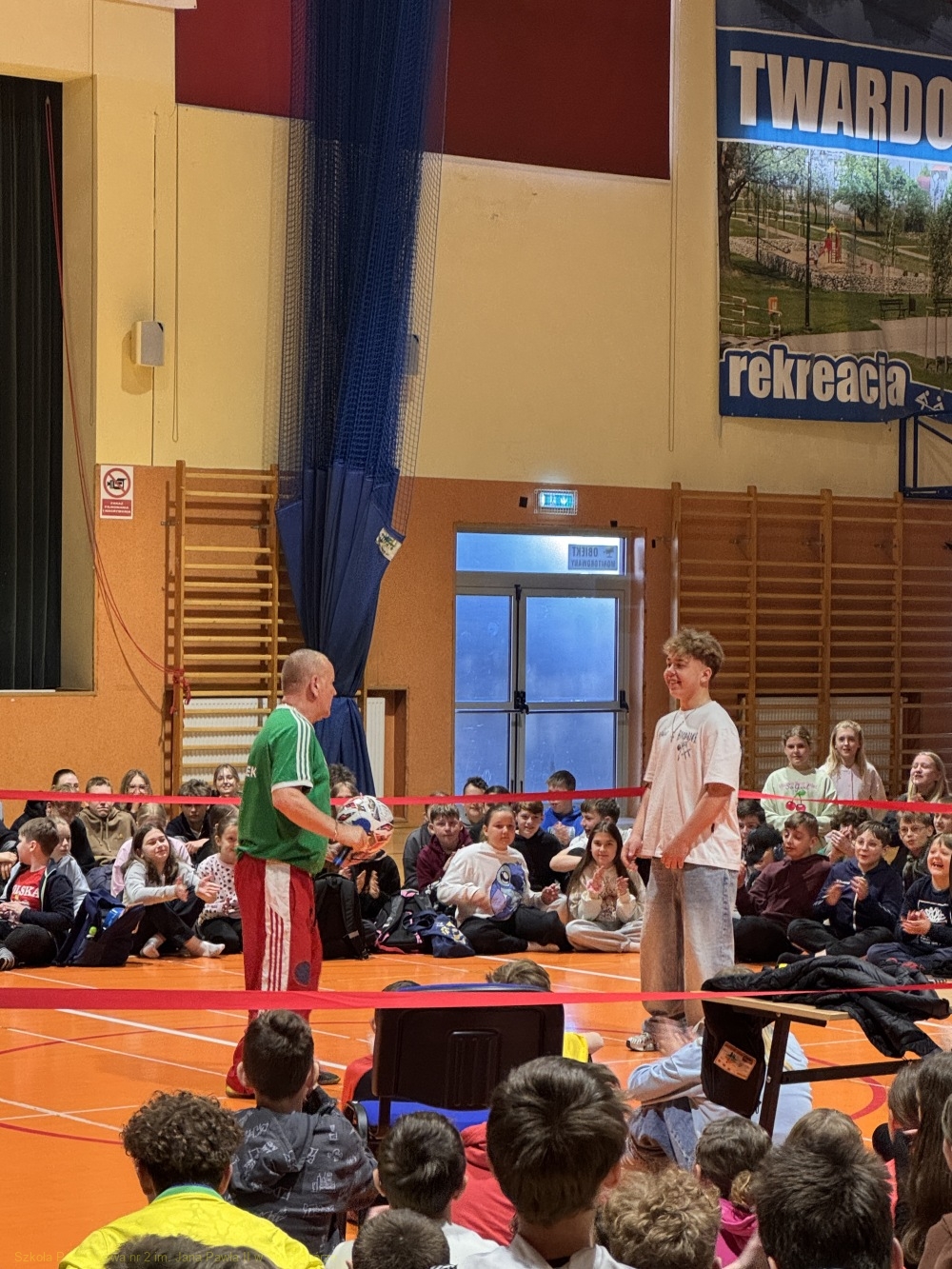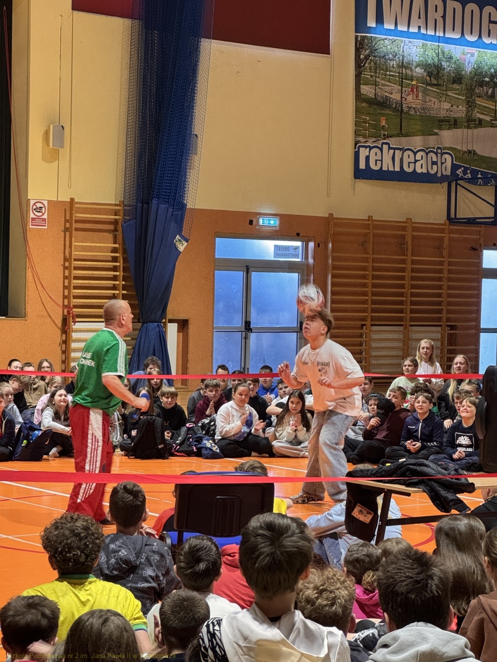 Uczniowie byli zachwyceni jego niezwykłymi umiejętnościami, talentem oraz wytrwałością 🤩👏. Pokaz wzbudził ogromne emocje i podziw wśród całej społeczności szkolnej!