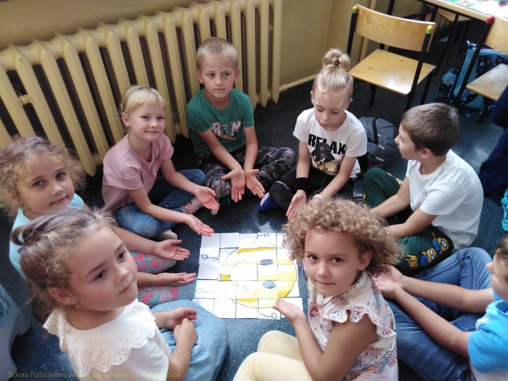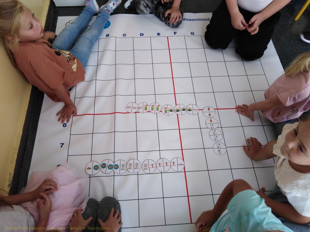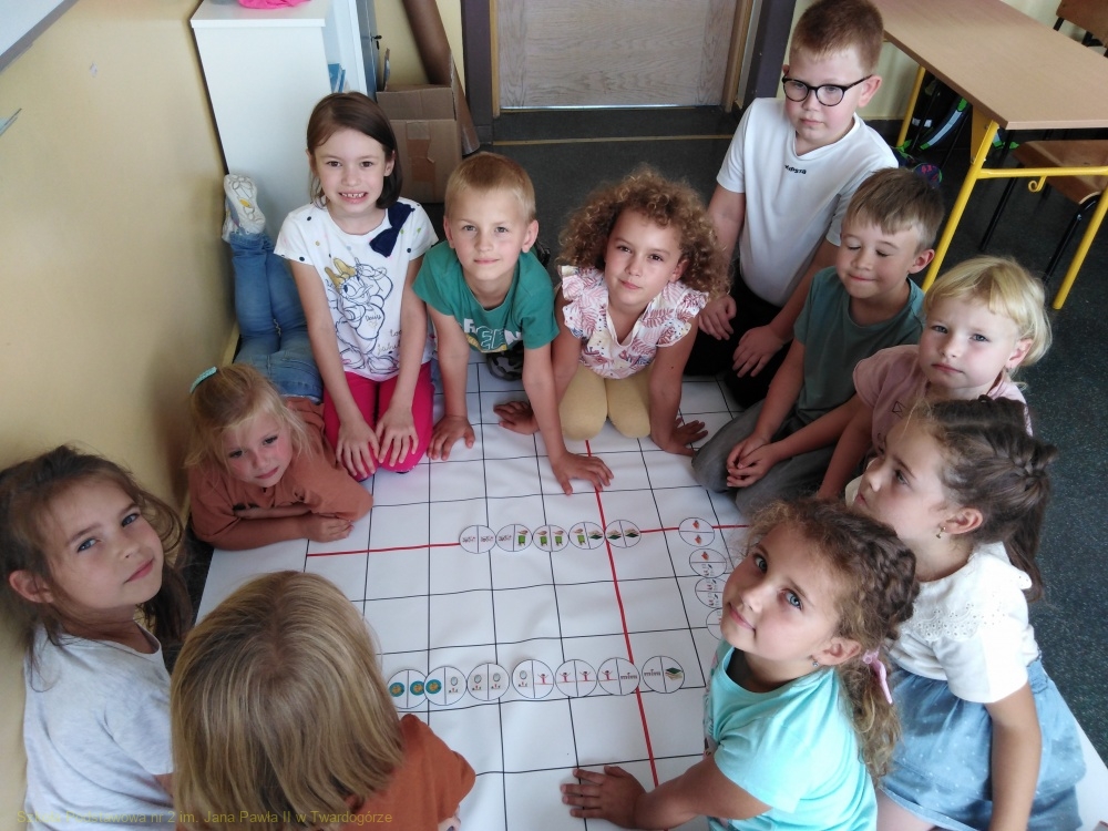 Czas pełen emocji, czasem skrajnych – obaw, niepewności, a z drugiej strony radości i ciekawości, co dobrego przyniesie nam ten nowy rok szkolny. Pierwszoklasiści świetnie poradzili sobie nie tylko z tym zadaniem, ale także z ułożeniem obrazkowego domino. Na lekcjach poświęconych tematyce warzyw i owoców rosnących w ogrodzie warzywnym i sadzie, na podstawie słownej instrukcji, ułożyli „zakodowane” obrazki przedstawiające warzywa i owoce.