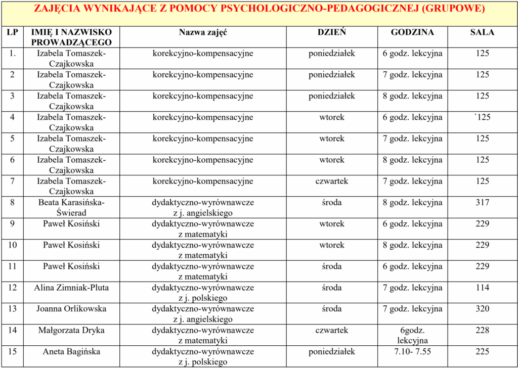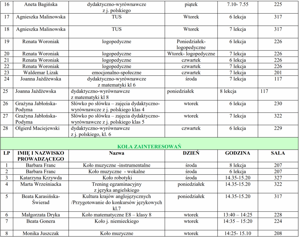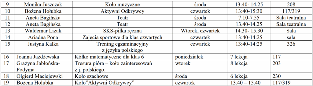 - Zajęcia pozalekcyjne klas IV-VIII
